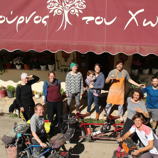 Nous atteignons le petit village de Zitsa. Ce point de chute nous avait été chaudement recommandé par le couple de français, Nicolas et Christiane, car là-bas, Kostas le boulanger du village réserve un superbe accueil aux voyageurs et en fait la renommée locale. Le temps d'une soirée et d'une matinée, nous aurons plaisir à partager du temps, des discussions et surtout ... du pain (!) avec lui, sa femme Ana et leur fille "Kiki", mais aussi avec les 5 autres voyageurs hébergés avec nous dans la "librairie" attenante à la boulangerie. Parmi eux, Lizzy et Torsten sont sur le retour d'un voyage de 4 ans à vélo (ils rentrent de Nouvelle-Zélande !). Ils nous filent de nombreux tuyaux et ressentis des pays que nous allons traverser tôt ou tard. Ils sont en pause depuis 4 jours à Zitsa après une méchante expérience sur la route des Météores sous la neige. Ils apprécient le temps passé à la boulangerie du village, ils sont un peu comme chez eux à ce moment là. Kostas leur avait préparé un pain "énergie" au seigle et aux graines, un truc de 5 kilos au bas mot. Ils le partagent avec nous. On est refait ! Et on repart encore plus chargés... de bouffe, comme toujours. C'est ouf ! Lizzie nous dit en riant (et avec son expérience) que "cinq kilos de plus ou de moins au final, ça change peu de choses...". On pense fort à Antoine (AR, si tu nous lis) pour qui chaque objet doit être soigneusement pesé et dont l'utilité doit être évidemment mesurée. Ahahah ! On va lui faire sa fête bien assez vite à ce petit pain de toutes façons.